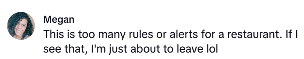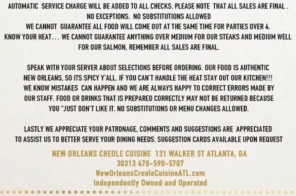 Here is a screenshot of the restaurant's policies @bodacious_bobo shared in her TikTok video.