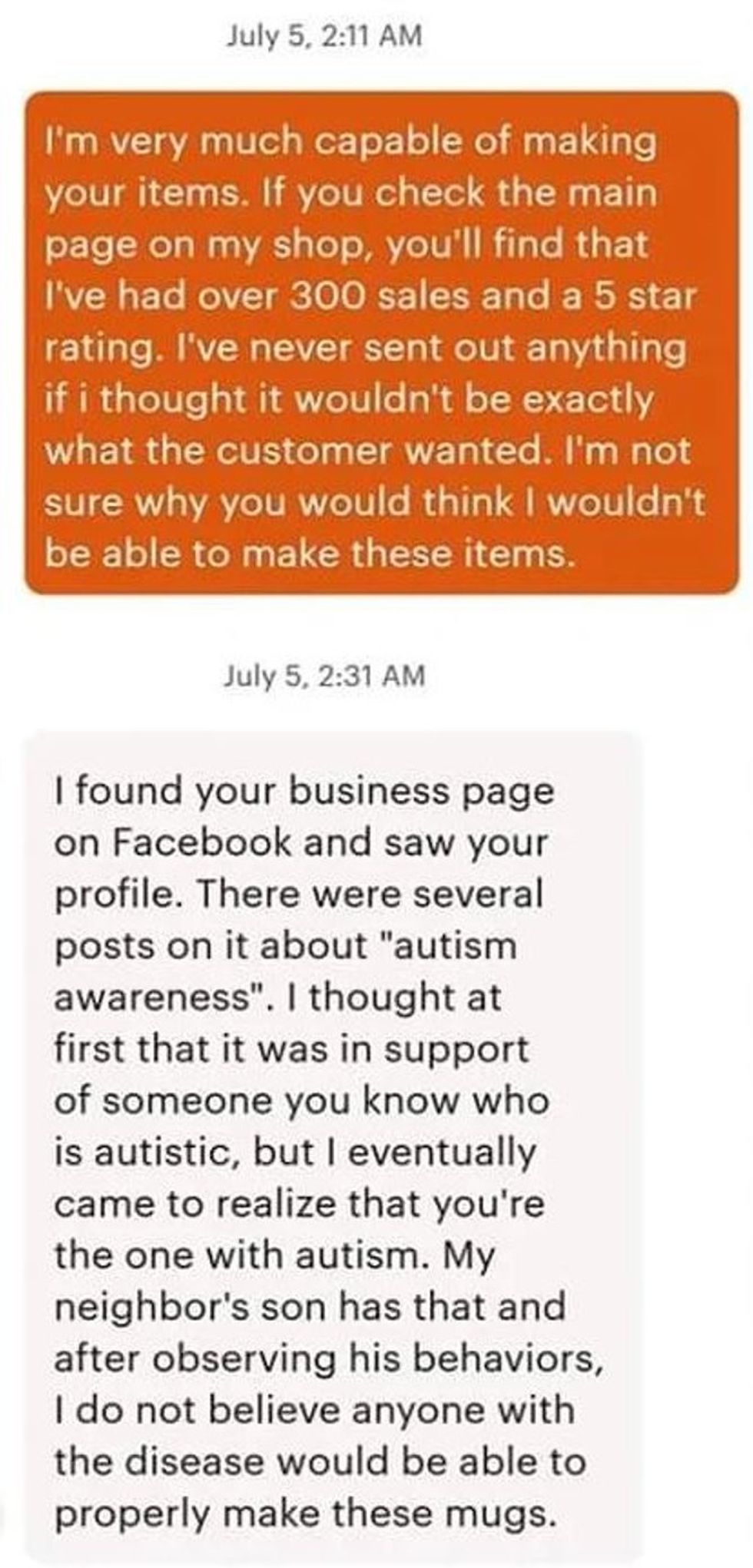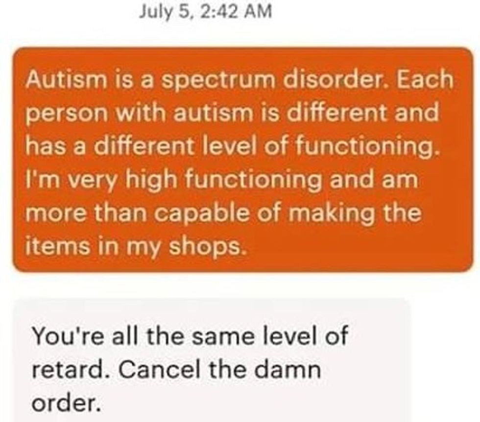 She took a screenshot of the conversation, which is sure to infuriate anyone with an understanding of autism.