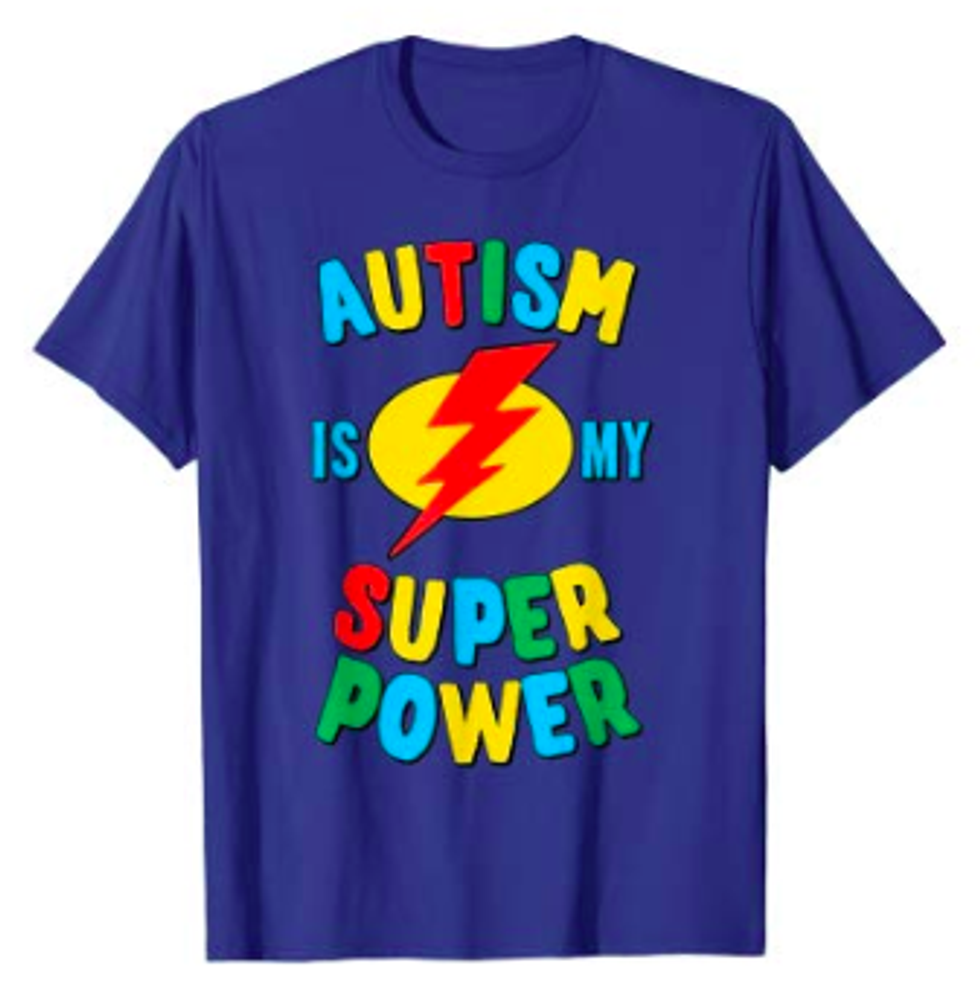 For people of all ages with Autism, this shirt declares that Autism Is My Super Power, and is available here in a variety of sizes and colors for men, women and children.