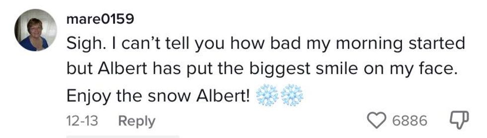 When Albert saw the snow covered ranch, he jumped with excitement and then went to get his goat friends to share the joy. His reaction was captured on video which went viral on TikTok.