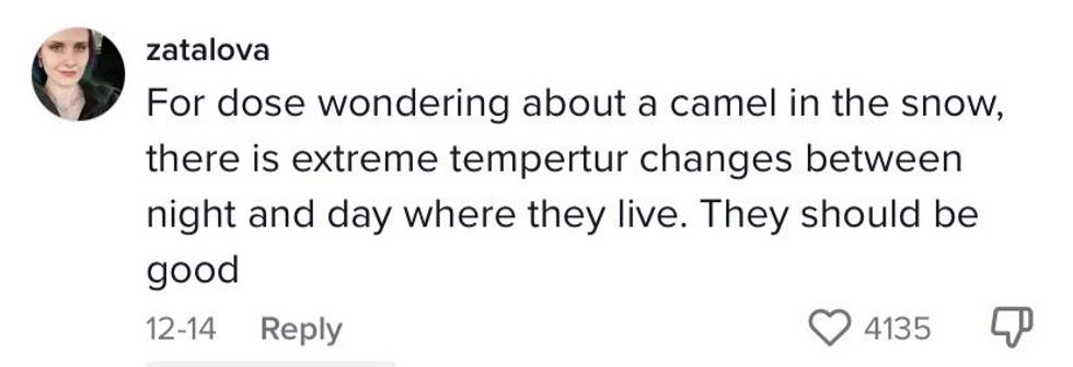 Nothing can compare to witnessing the joy on a babies face, especially if that baby is a camel seeing his first snow.
