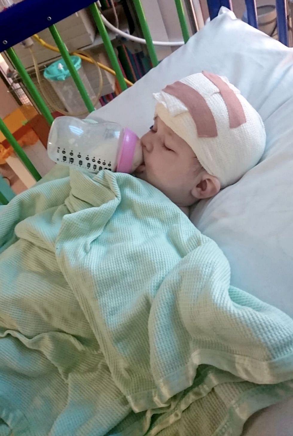 A baby girl has had life-saving surgery to remove an aggressive cancerous brain tumor—after EIGHT different doctors dismissed her symptoms as a viral infection.