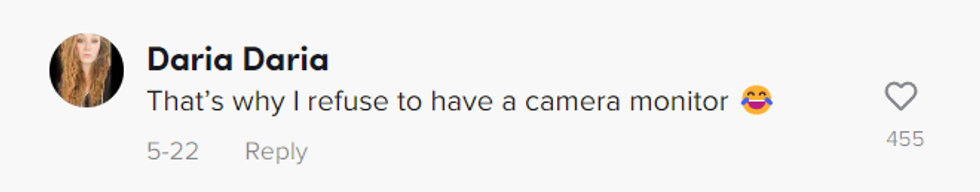 The screen was essentially just giant eyes, her nose, and her little mouth - all in the terrifying greyscale security monitor color palette horror movie buffs know and love. Why not throw some Amityville Horror music over top of that and have some fun with the fact that your baby was using the baby monitor to monitor mom; being a baby baby monitor monitor, if you will?