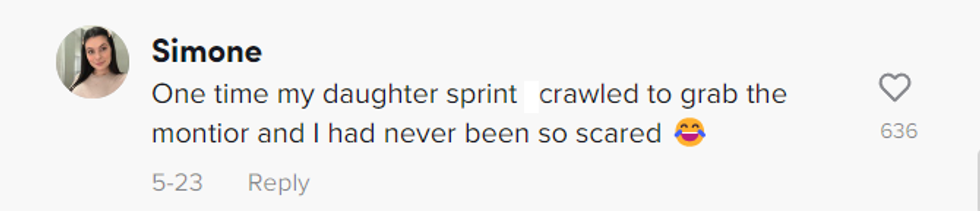 Christie posted a clip showing a moment of mundane life as a mom to a wee little creeper. The short video showed her, with a text overlay that says "I'll just check the baby monitor."