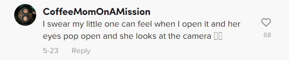 The clip then shows the baby monitor, where we get our glimpse of mommy's little weirdo. Christie's daughter just happened to be seated close to the monitor staring directly into it when mom checked it; giving us all a little heart attack.