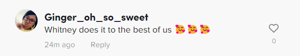 So TikTok was zero percent surprised when our chunky little baby friend got all choked up listening to Whitney sing the beyond-famous line. Her delivery just does things to people. Even if those people are tiny ones who've never experienced heartbreak and don't understand what she's saying.