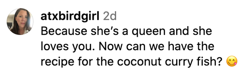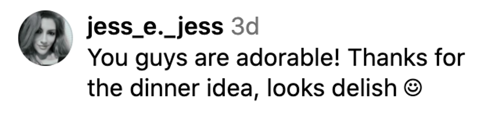 Sedgwick then revealed their meal plan: coconut curry fish, broccoli rabe, cauliflower, rice, and shishito peppers— “just in case there's not enough.”
