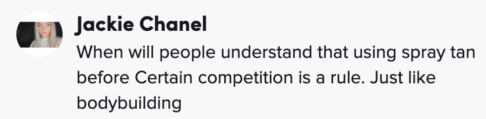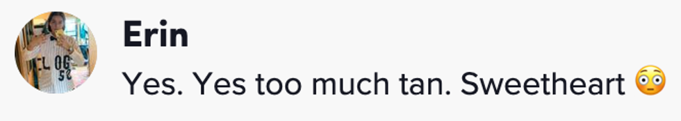 In response to a TikToker who commented she had "too much tan," the TikToker posted a follow-up clip showing a variation of the before and after skin coloration with an overlaid text that read: