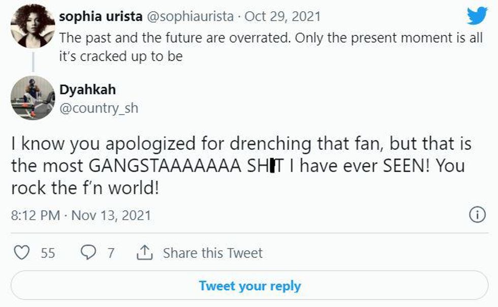 According to The Wrap, during the show Urista told the audience she would pee on someone during the last song when she finished her bottle of water.