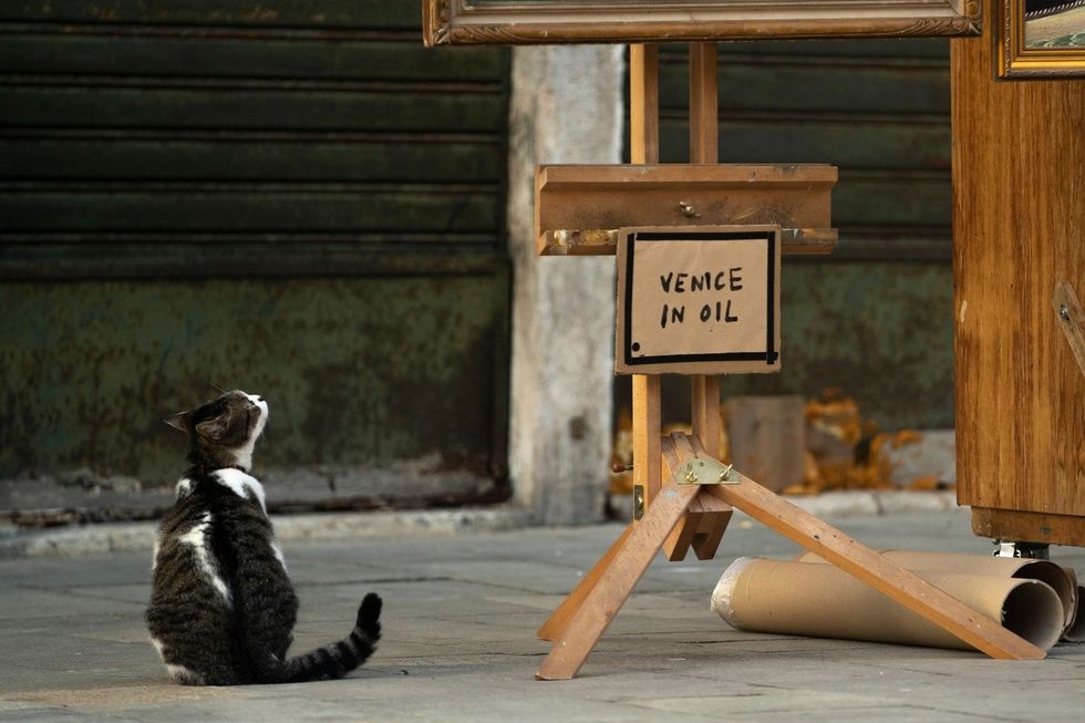 The video posted by Banksy to social media shows mixed reactions from Venetians walking by his artwork, before the camera pans out to reveal a cruise ship anchored in the waters nearby.