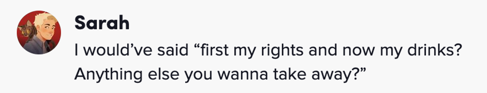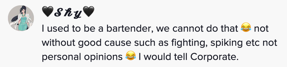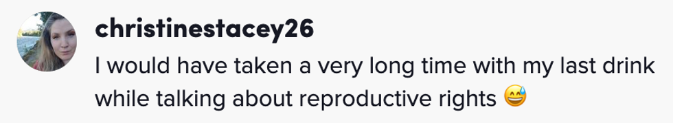 “We made a comment about women losing their rights this past week and the bartender closed us all out without asking LMFAO."