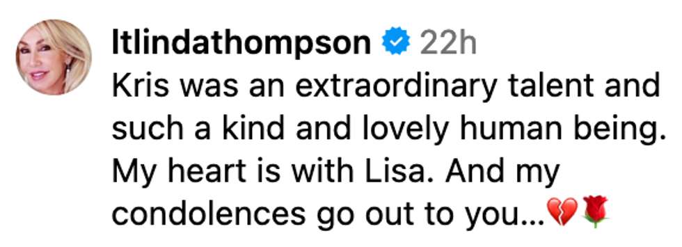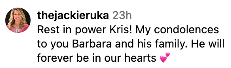 "My thoughts go to Kris’ wife, Lisa who I know supported him in every way possible."