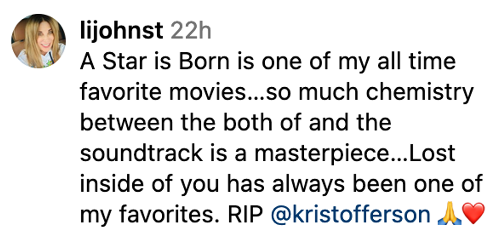 Barbra Streisand paid a sweet tribute to her A Star is Born costar Kris Kristofferson after his death over the weekend.