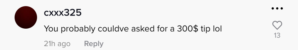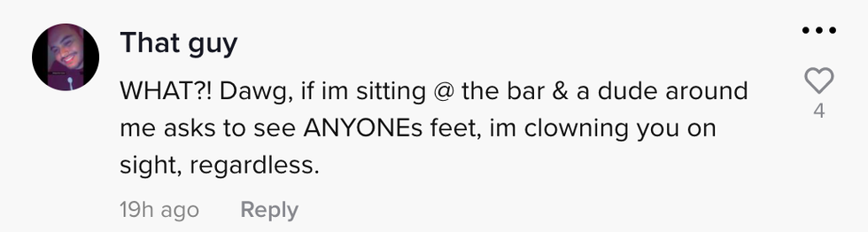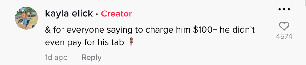 However, Elick made it clear in a subsequent comment an increased tip from this admirer of women's feet was most definitely not in the cards.