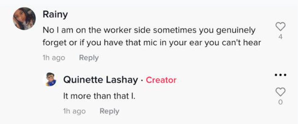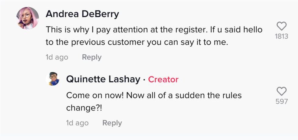 When Lashay questioned the employee's lack of greeting by saying "hello" again—this time in an asking tone—the employee fired back again with "cash or card."