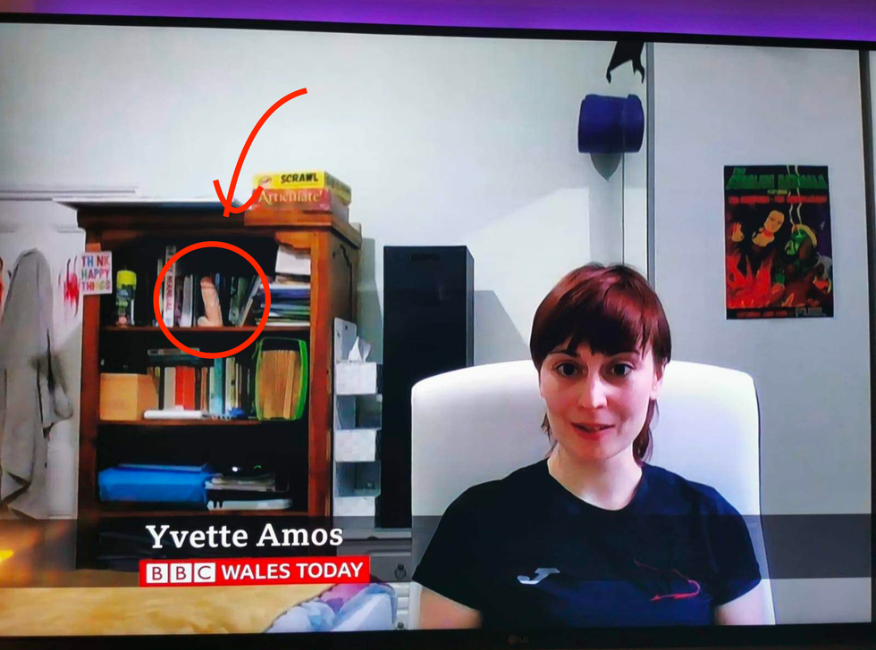 "Perhaps the greatest guest background on the BBC Wales news tonight. Always check your shelves before going on air."
