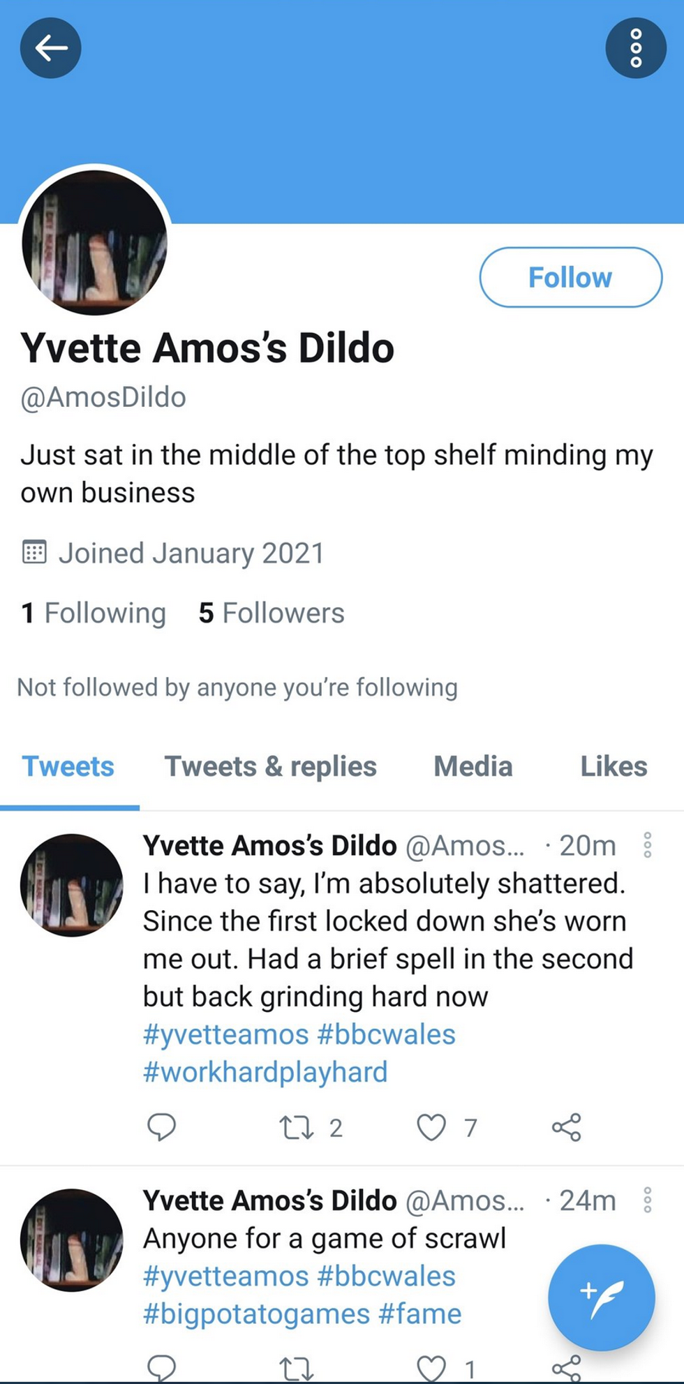 Twitter user Harry Andrew also pointed out what was indisputably a flesh-toned dildo perched on her bookshelf.