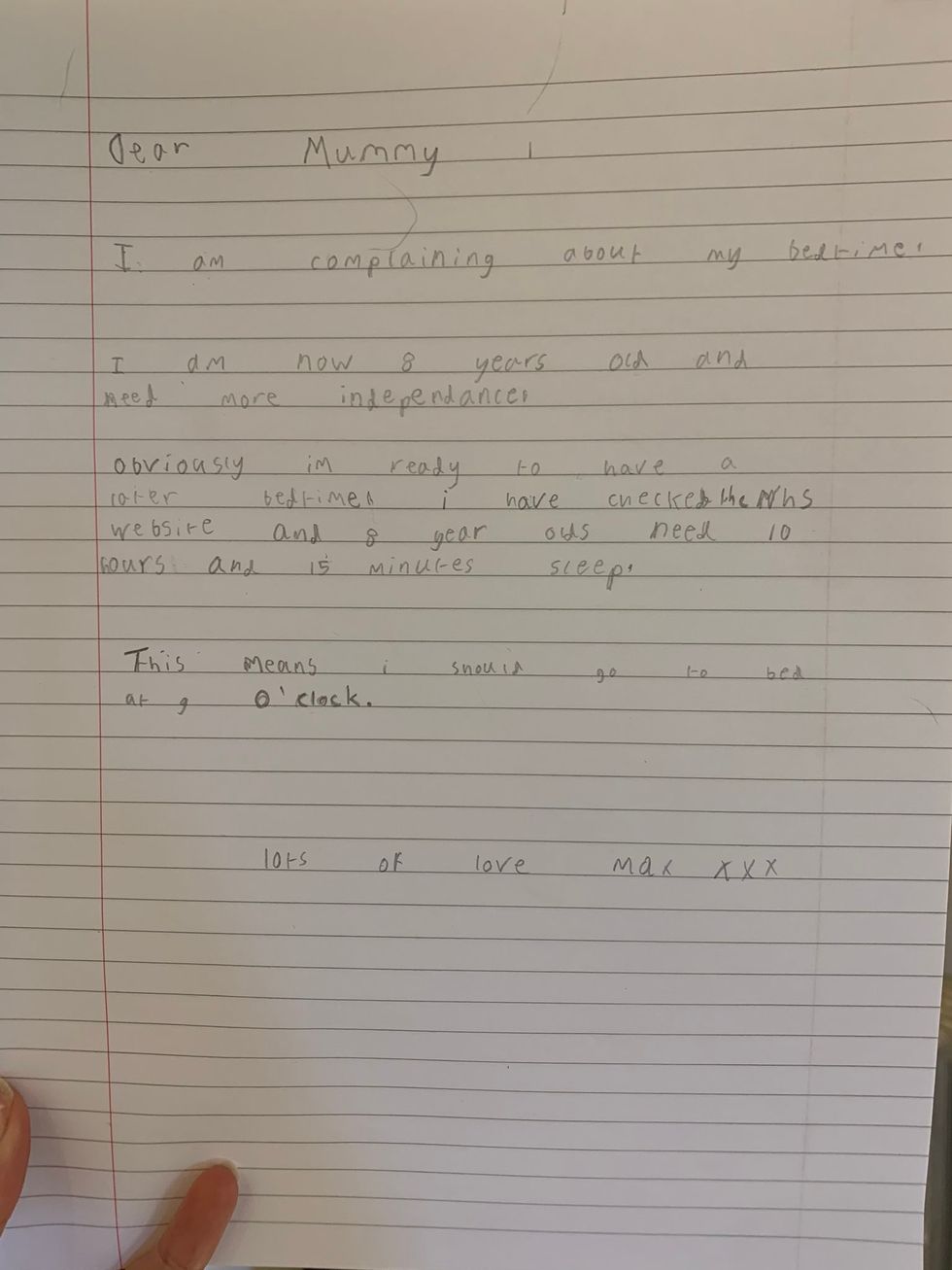An 8-year-old boy, Max, was no different when he lodged a formal complaint with his mother regarding his early bedtime.