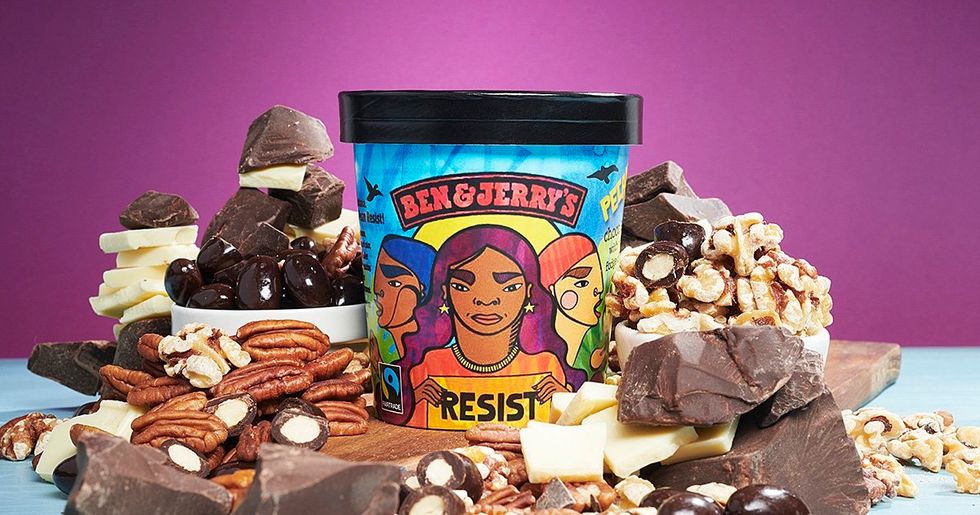 Ben & Jerry's has long been known for embracing current social events in their ice cream names and flavors. They even call themselves an "aspiring social justice company." Their most recently released flavor is a chocolate and nut ice cream. The flavor is officially described: