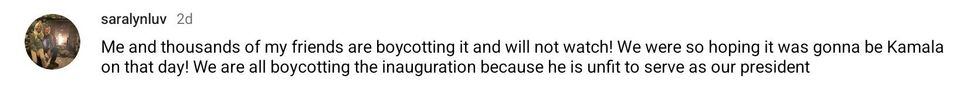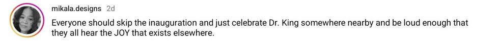 She is not celebrating the inauguration! She is glad the country also has the opportunity to reflect on justice and honor and human rights on that day instead of the bigotry, lies, corruption and division that other guy represents, which is what I’ll be doing.