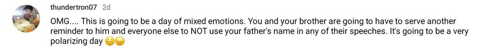 "We cannot retreat or recoil. We have to commit ourselves to continuing the mission of protecting freedom, justice and democracy in the spirit of my father."