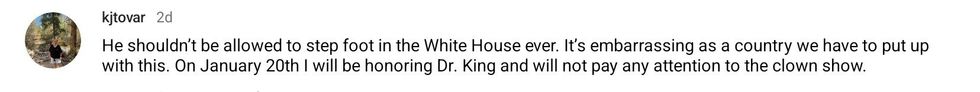 I'm still angry that on MLK Day, one of the most racist men in the US will be sworn in to be our president. MLK fought against men like him. A man who looks down on every race but his own. But, Maga is going to find out that if you're white and poor, Trump doesn't give a damn about you either.