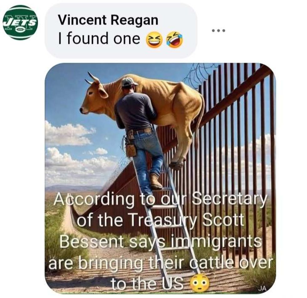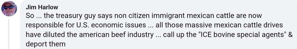 Trump's Treasury Secretary expected people watching Fox News to be stupid enough to believe migrants from beef-producing nations like Argentina, Brazil, and Uruguay were trekking from South America through the jungles with cattle.