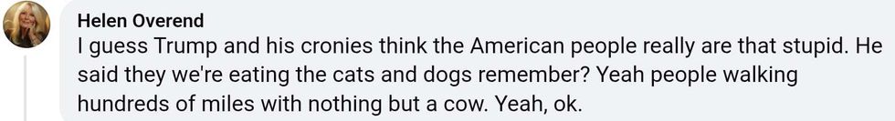 "Look, I’m sure the Ohio folks were eating the cats and the dogs. And that Trump sent birthday cards only to Clinton’s friends, not his own."