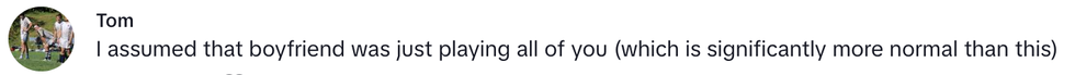 Several also questioned why the friends only texted with their boyfriends throughout the yearlong course of their "relationships."