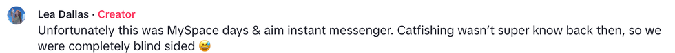 "The glory days but everyone was catfishing like no other 'cause it was easy back then."