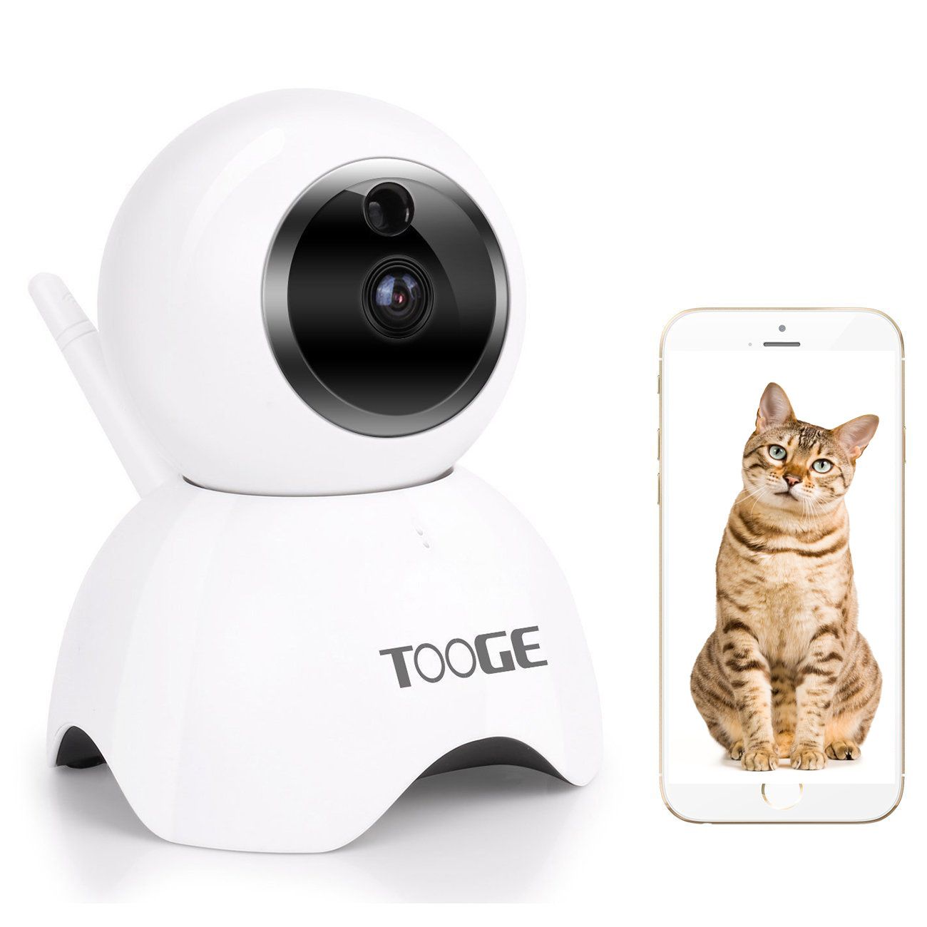 The TOOGE Indoor Cat Camera offers you an easy way to check in on your cat when you're away from home. The device works with an app on iPhone/Android smartphones and offers quick and easy set-up. It also has speakers so when you talk into your phone, you can talk to your cat.
