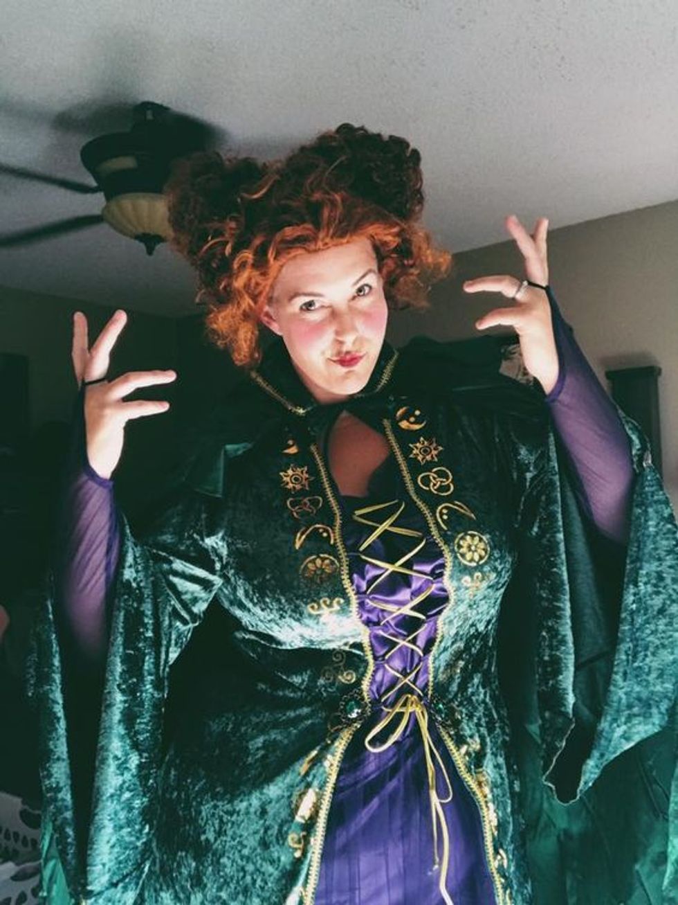 Even though Hocus Pocus is over 20 years old, the Sanderson sisters are still an iconic part of Halloween for many Millennials. I mean, who hasn’t memorized the words to “I put a spell on you”? This funny Halloween costume channels oldest sister Winifred (right down to the red wig). Bonus points if you recruit a couple of friends to be Mary and Sarah Sanderson.