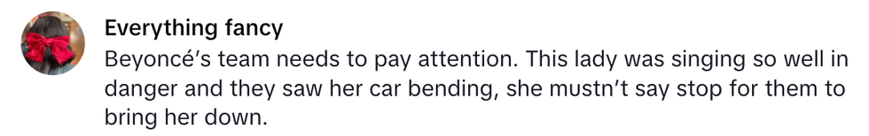 The incident happened when she was singing “16 Carriages” at the Cowboy Carter and the Rodeo Chitlin' Circuit Tour. After a final video interlude showcasing her career and life, the singer typically serenades the audience with her Grammy-winning 2024 hit from the Cowboy Carter album—while floating in a flying car, accompanied by an American flag that waves above the concertgoers.