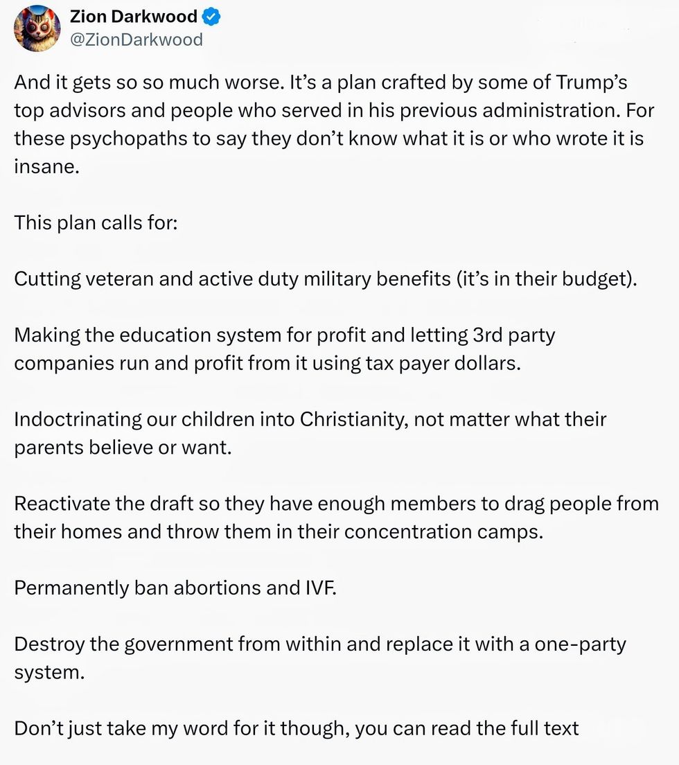 Trump first claimed he knew nothing of the plan once embraced and touted by Republicans after The Heritage Foundation president Kevin Roberts made threats of domestic terrorism and a second American Revolution if conservatives don't get their way without opposition.