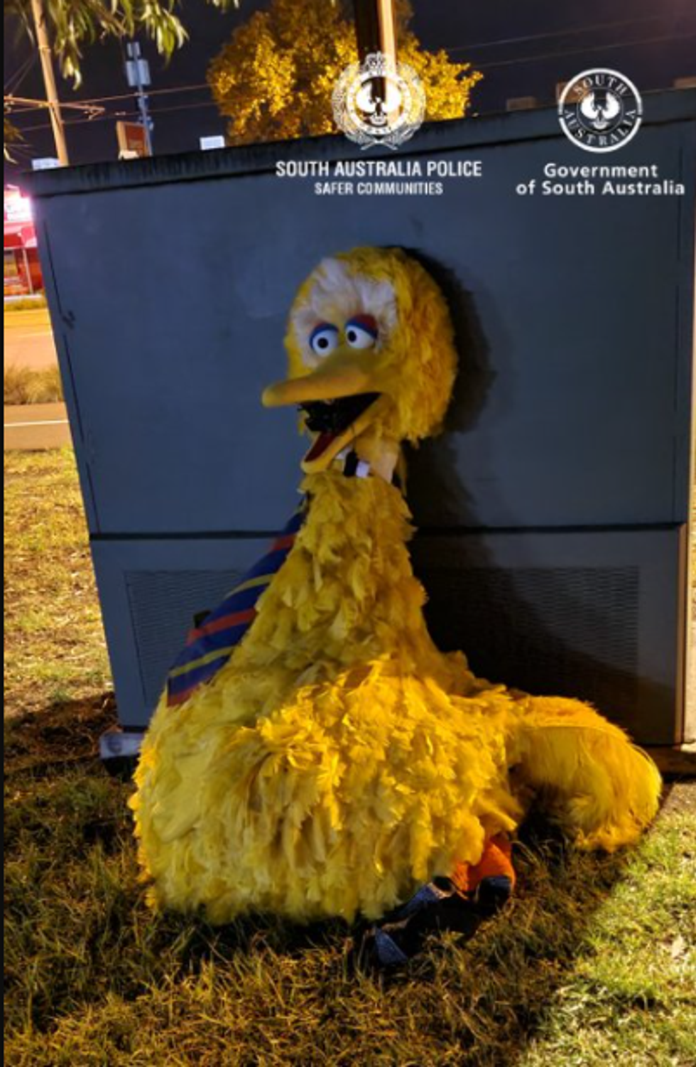 "Update: Big Bird is back! The bright yellow Sesame Street costume recently stolen from a Circus at Thebarton has been returned in the early hours of this morning."