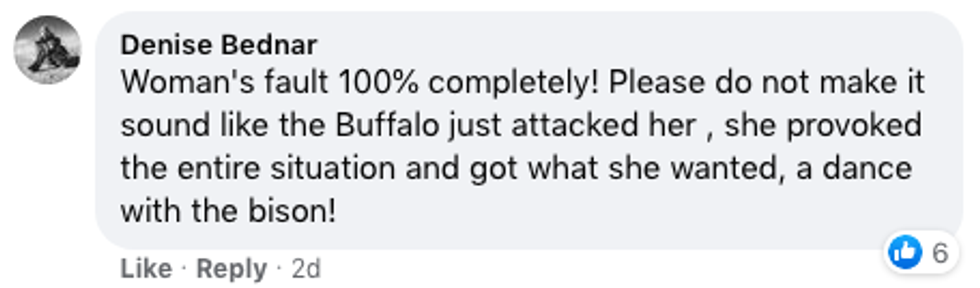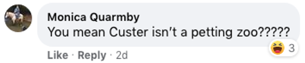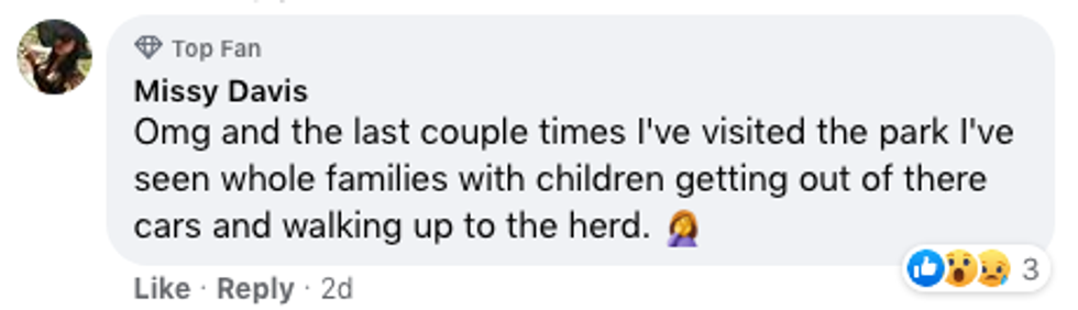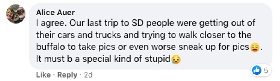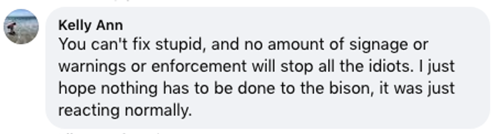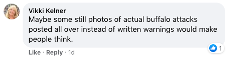 In its Facebook post, the Custer County Sheriff reminded readers that it had just issued a warning last week that visitors to the park should keep their distance from buffalo, especially when calves are present.
