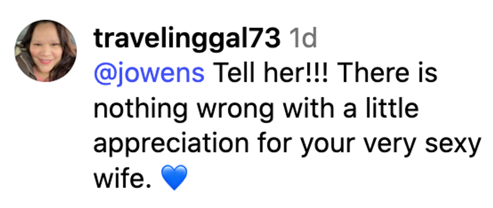 Owens chimed in alongside many others with an appropriately thirsty comment about his wife.