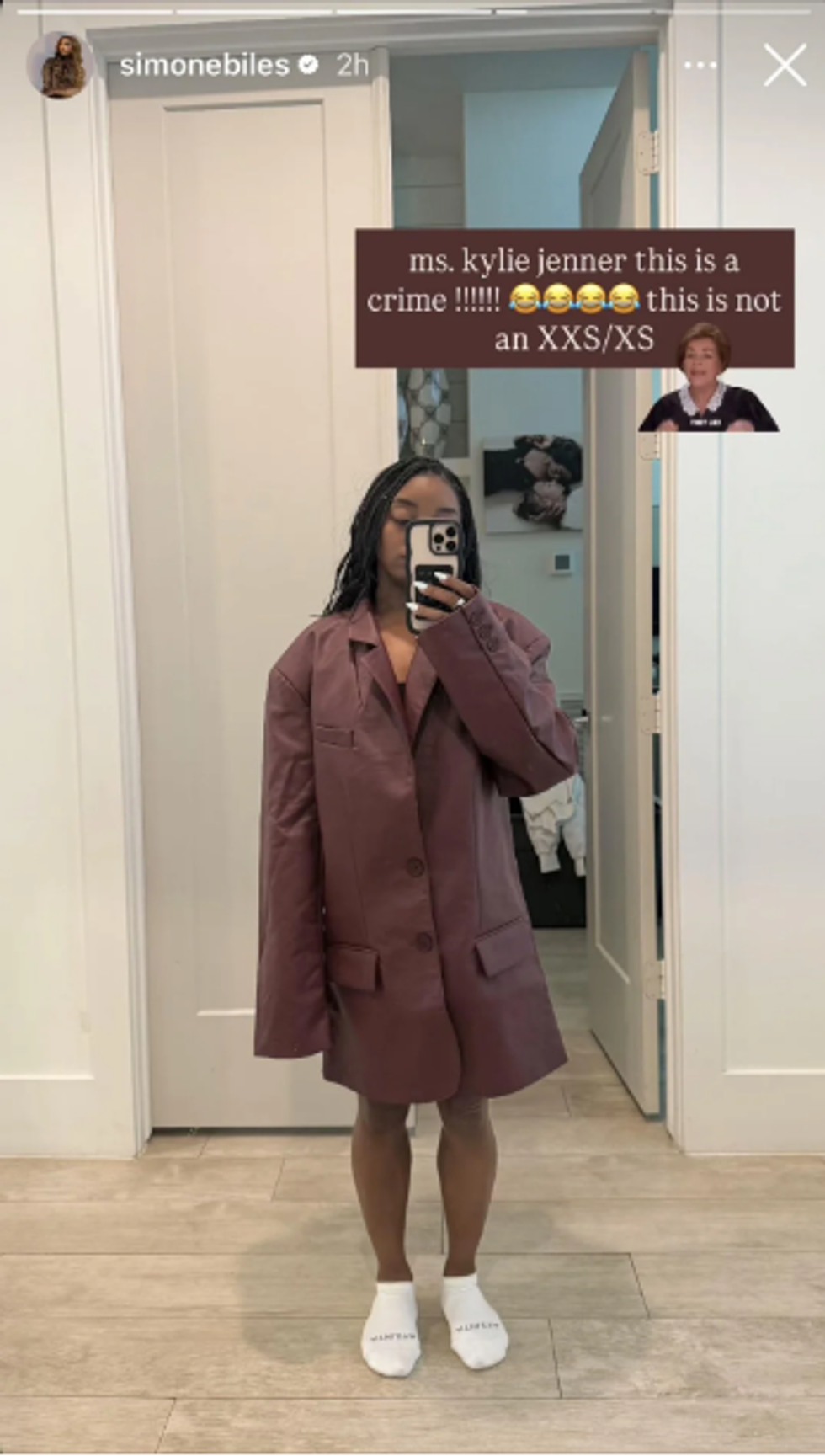 One of the ordering suggestions was to "size down" for a less oversized look, so Biles ordered an "XXS." But when the blazer arrived, it did not give her the look she wanted.