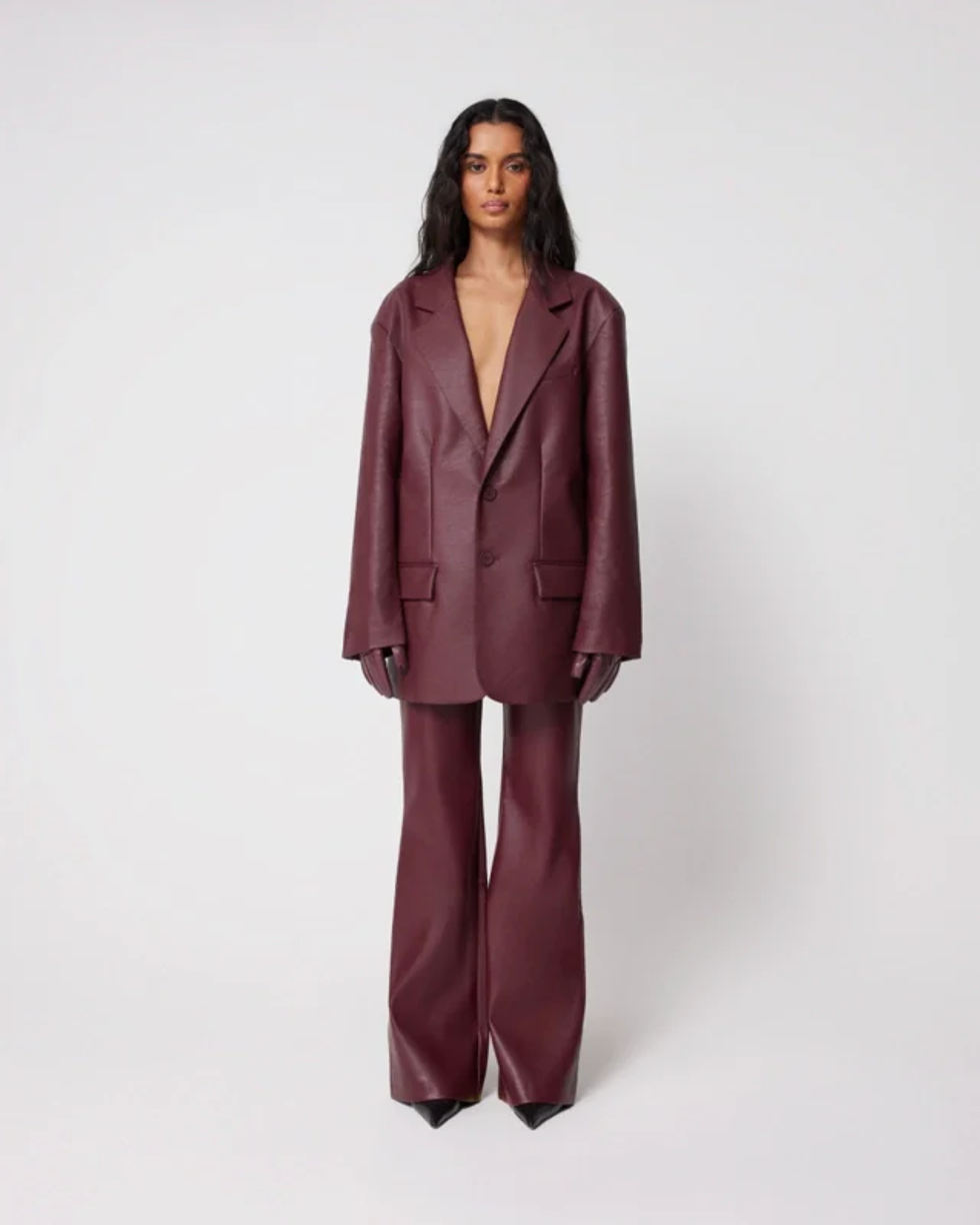 The blazer is faux leather, which isn't the most forgiving fabric, and it's also supposed to be "oversized" and "boxy," according to the description. Even the model, who stands at 5'11, looked a little lost in the sauce.