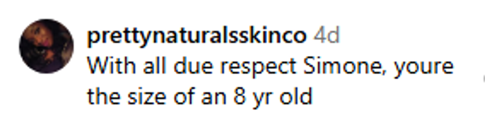 "They'll come for Simone and accuse her of hating, but it's high time we start calling out vanity sizing. It's so, so bad that we now need xxxs because S-M is now being labelled XXS. Like it's a massive TASK now to find a 23-24 inch waisted skirt in the US..." - The_Philosophied