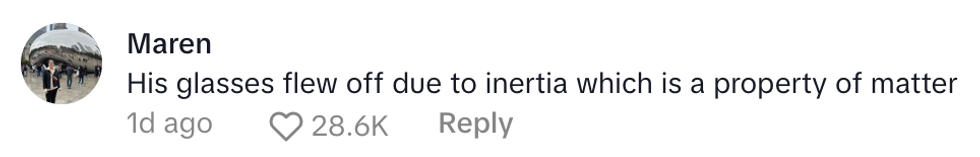 Many people cheered him on for inadvertently teaching physics with his glasses mishap.