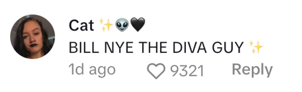 The chanting of Nye's iconic theme song in the comments was practically audible.