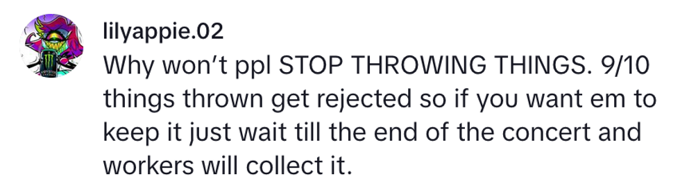 “Stop throwing things at our girlies or they’ll make us go back to concerts on Zoom."