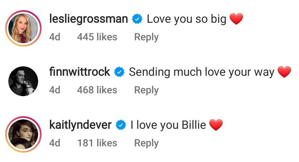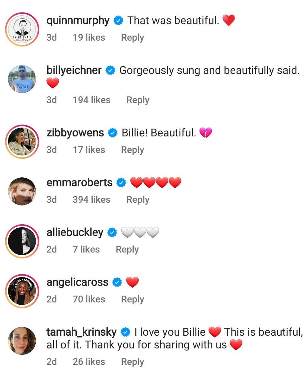Many stars of film and TV sent their love to Lourd in the video's comments section, including a number of Lourd's former co-stars from American Horror Story, Booksmart and Scream Queens.