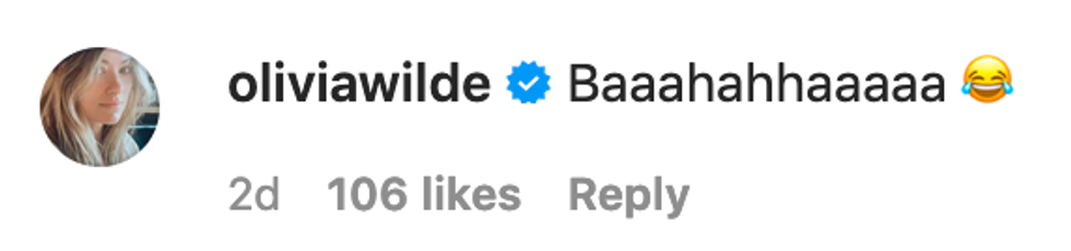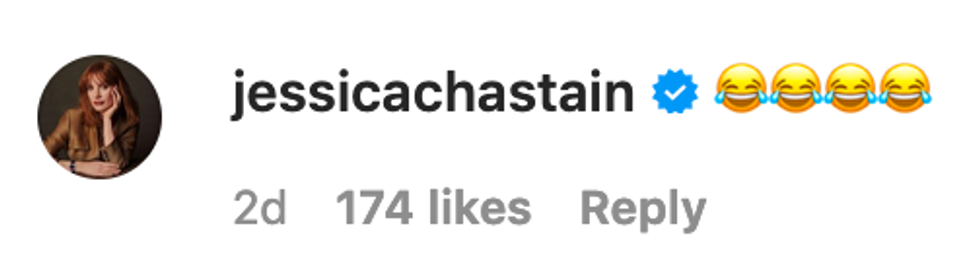 Molly's Game star Jessica Chastain responded with laughing emojis, and Life Itself actress Olivia Wilde simply wrote, "Baaahahhaaa."