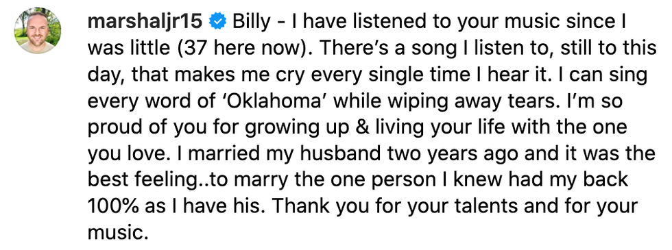 Country music star Billy Gilman, known for his hit "One Voice" and his runner-up finish on The Voice season 11, married his partner Anthony Carbone on August 23 in Rhode Island.