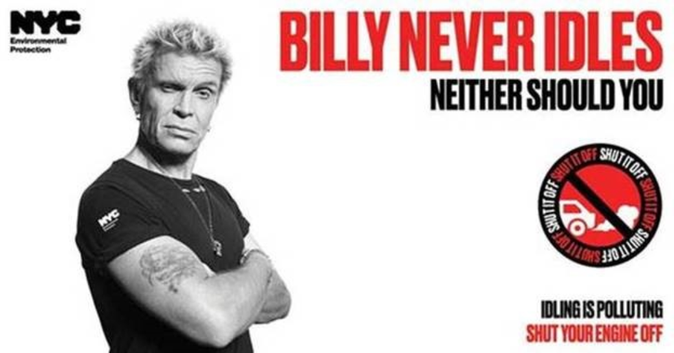 The artist behind songs like "Rebel Yell" and "Eyes Without a Face" spent February 27 in front of New York's City Hall, shoulder to shoulder with Mayor Bill de Blasio and a few other automobile emissions experts. Idol was the crowd-pleasing—and aptly named—superstar NYC booked to add a little juice to its "War on Idling" Campaign, an initiative which aims to educate the public about the health and environmental impacts of idling one's vehicle.