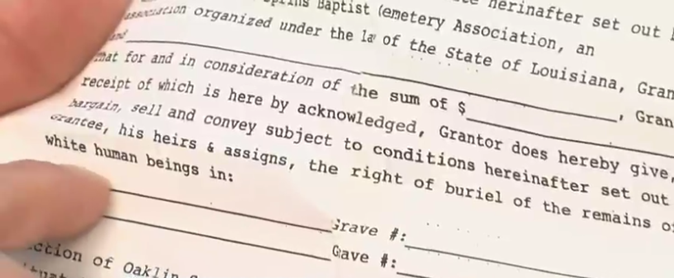 He explained the by-law dates back to the 1950s and explicitly gives people "the right of burial of the remains of White human beings."