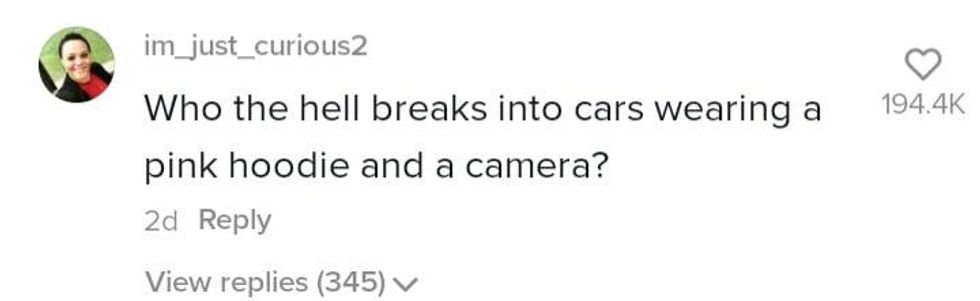 "That's crazy! So the description was me that broke into your car? They had on a pink hoodie, black nails?"