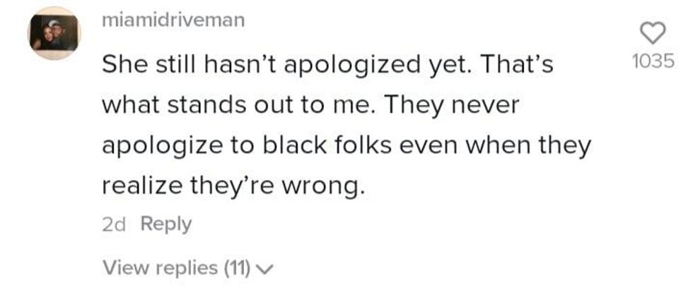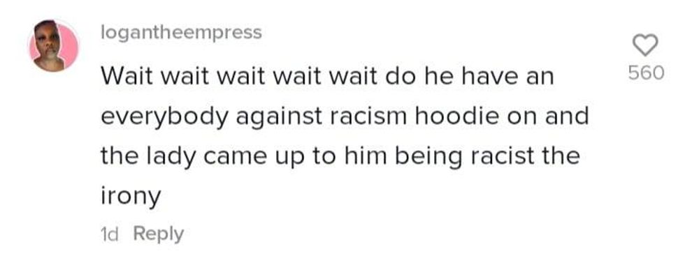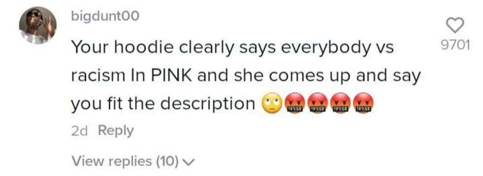 The man accompanying the woman then mumbled a comment about Black "getting more likes" if he "raised his voice."
